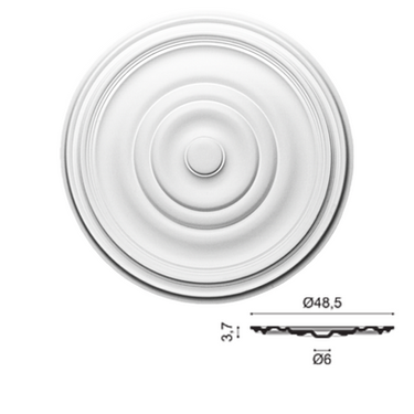 Rozetă R09 Orac Decor din poliuretan, Ø48,5 cm, cu design simplu și concentric, ideală pentru tavane moderne sau clasice.