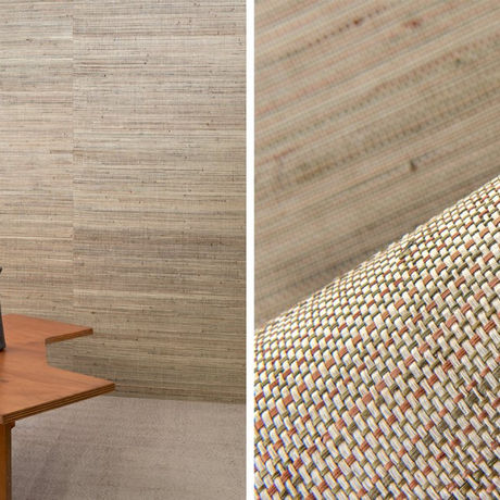 Infini este realizat dintr-o combinație de fir de hârtie și frunze de bananier – un material natural, țesut și vopsit manual. Absorbția inegală a pigmentului conferă un efect vizual vibrant, specific acestui produs natural. Nodurile fine și variațiile de nuanță subliniază caracterul său autentic și viu, aducând pereților o textură sinceră și organică.