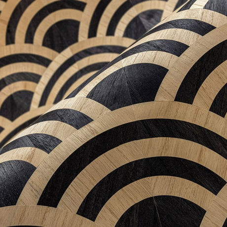 Modelul Seigaiha reinterpretat prin intarsii din furnir de lemn creează o compoziție hipnotică de cercuri suprapuse, ce evocă valurile nesfârșite ale oceanului. Acest simbol ancestral japonez poartă cu el semnificații profunde de noroc, forță și continuitate. Jocul grafic dintre lemnul natural și inserțiile întunecate adaugă peretelui o eleganță grafică și o vibrație calmă, dar puternică. Ideal pentru spații în care designul se întâlnește cu simbolismul.