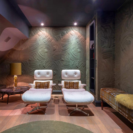 Acest tapet spectaculos impresionează prin textura sa tridimensională și atingerea moale, asemănătoare catifelei. Modelul curbat creează un efect ritmic și sculptural pe perete, aducând un plus de profunzime și rafinament în orice spațiu