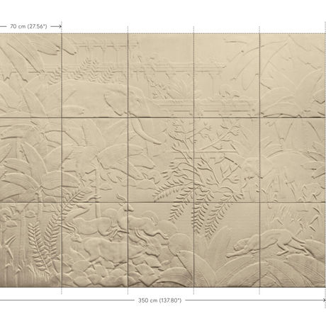 Tapet reliefat Babylon — scenă mitică într-un peisaj luxuriant Acest tapet spectaculos transformă peretele într-o frescă sculpturală, unde palmieri, animale și temple se întrepătrund într-un relief subtil. Inspirat de vegetația și simbolurile Mesopotamiei, designul aduce un aer oniric și atemporal în orice interior. Ideal pentru spații artistice, zone de relaxare sau camere cu accente etno-minimaliste.