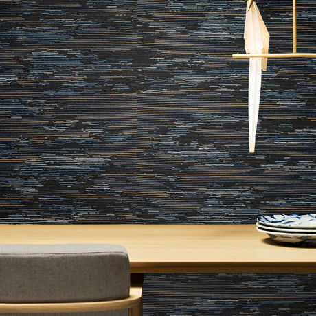Un tapet realizat din iută și rafie țesută, care onorează tradiția covorașelor tatami japoneze. Modelul abstract amintește de nori colorați ce se destramă lent la apus, într-o compoziție vizuală ce evocă trecerea subtilă de la zi la noapte. Textura naturală și nuanțele bogate – de la albastru-indigo la tonuri aurii – adaugă profunzime și căldură oricărui interior, transformând peretele într-un peisaj textil în mișcare.