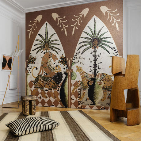 Cu un aer arhaic și fantastic, acest tapet panoramic reunește influențe siciliene antice și scene mitice într-o compoziție vibrantă, plină de simboluri. Numele „Armalu” provine din dialectul sicilian și înseamnă „animal”, făcând trimitere directă la creaturile legendare reprezentate în motiv. Tapetul este imprimat pe un fundal cu aspect de pergament, conferindu-i un efect vintage aparte, ca desprins dintr-un manuscris vechi. Modelul este repetabil, permițând alăturarea mai multor panouri pentru a crea o poveste vizuală de mari dimensiuni. Un tapet spectaculos, ideal pentru spații care celebrează expresia artistică, tradiția și forța imaginativă a decorului