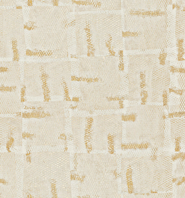 Acest tapet este o compoziție subtilă de petice de hârtie așezate pe un fundal metalic, peste care se întind tușe aurii cu aspect pictural. Reflexele discrete și textura variată transformă peretele într-o piesă decorativă rafinată, cu aer prețios. O alegere ideală pentru interioare elegante, unde lumina se reflectă în detaliu.